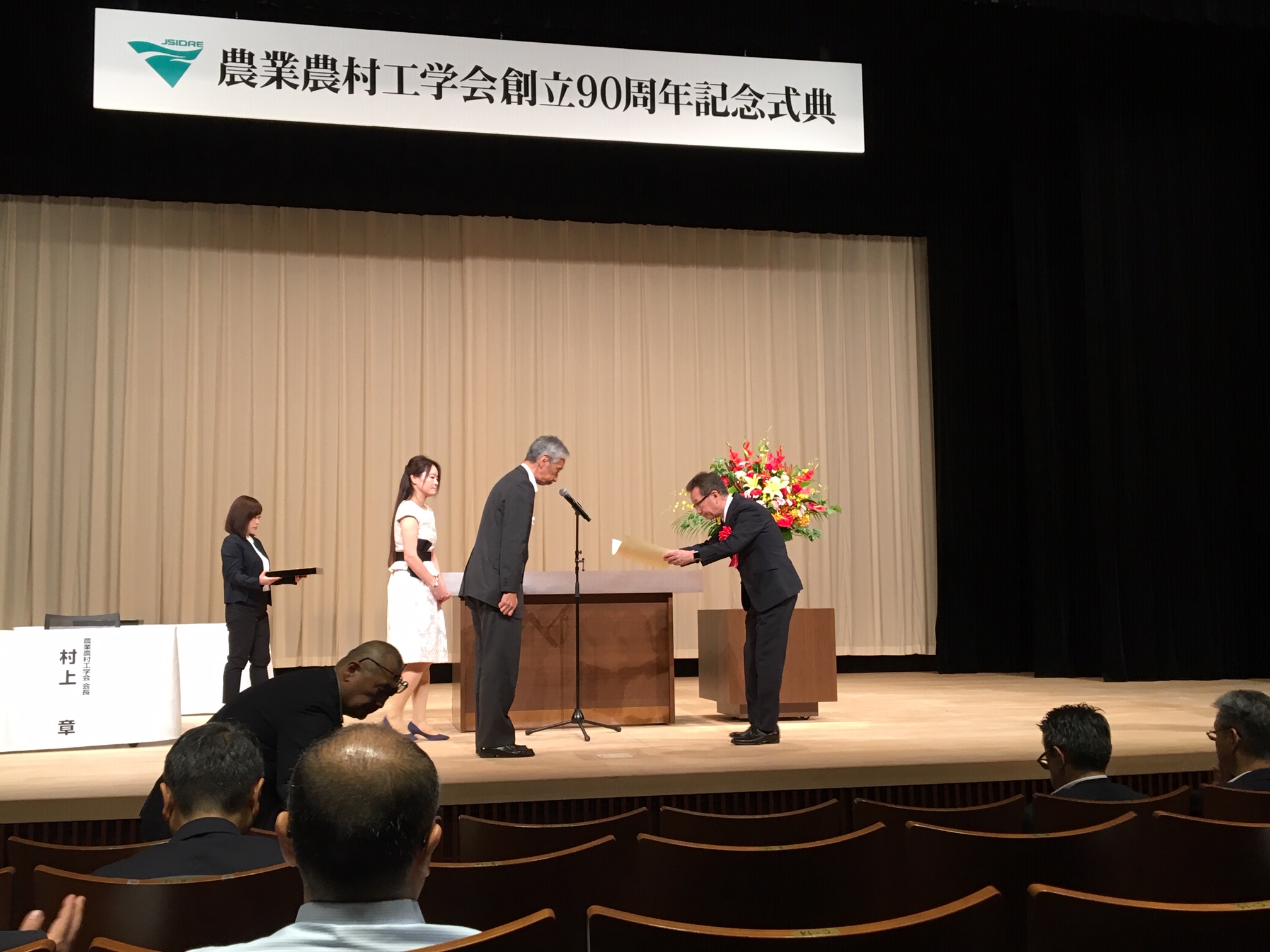 去る8月27日に農業農村工学会創立90周年記念式典が開催され、当社からは社長が参加し、継続教育に熱心に取り組んでいる賛助会員として感謝状をいただきました。